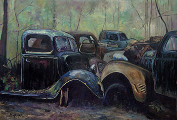 Backseat Riders oil on canvas, 34 x 25 inches